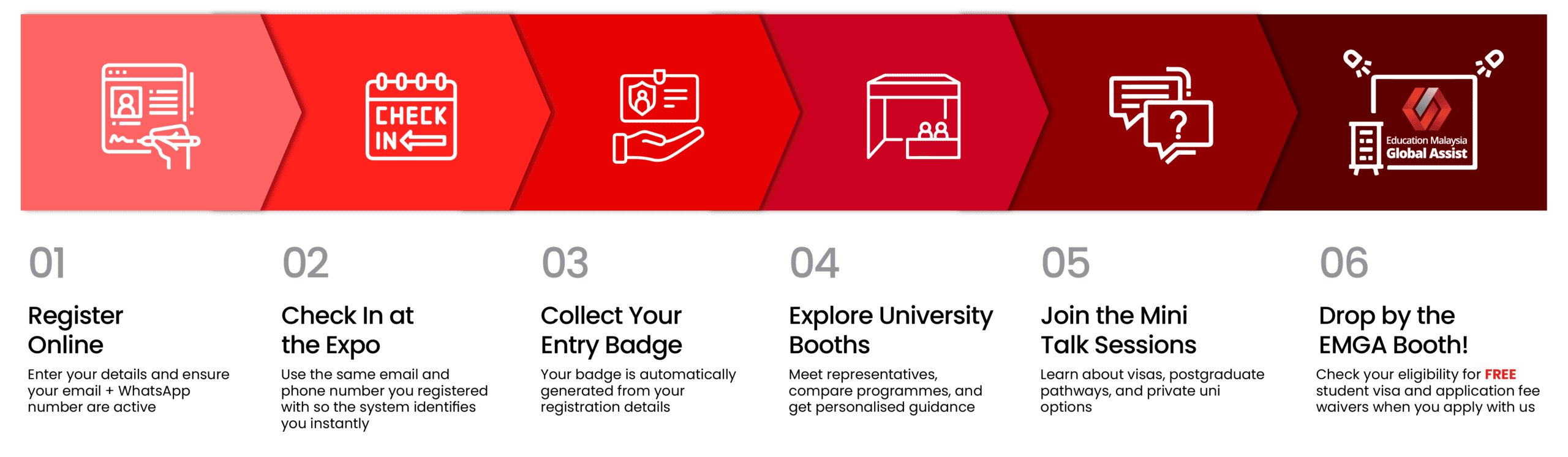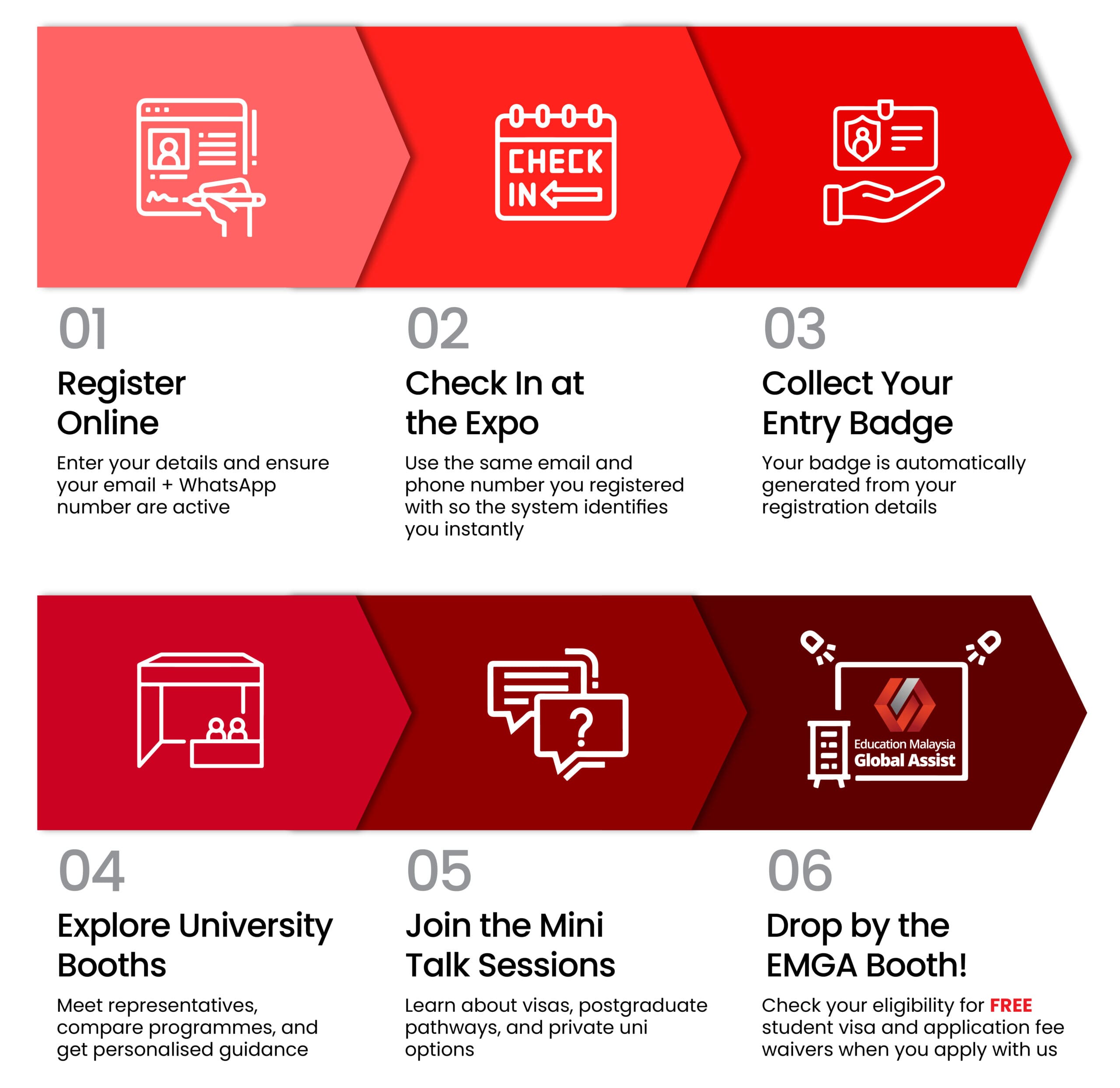 Join us at the Yes2Malaysia Expo and visit EMGA booth to check if you’re eligible for a FREE flight ticket, FREE student visa, and application fee waiver.